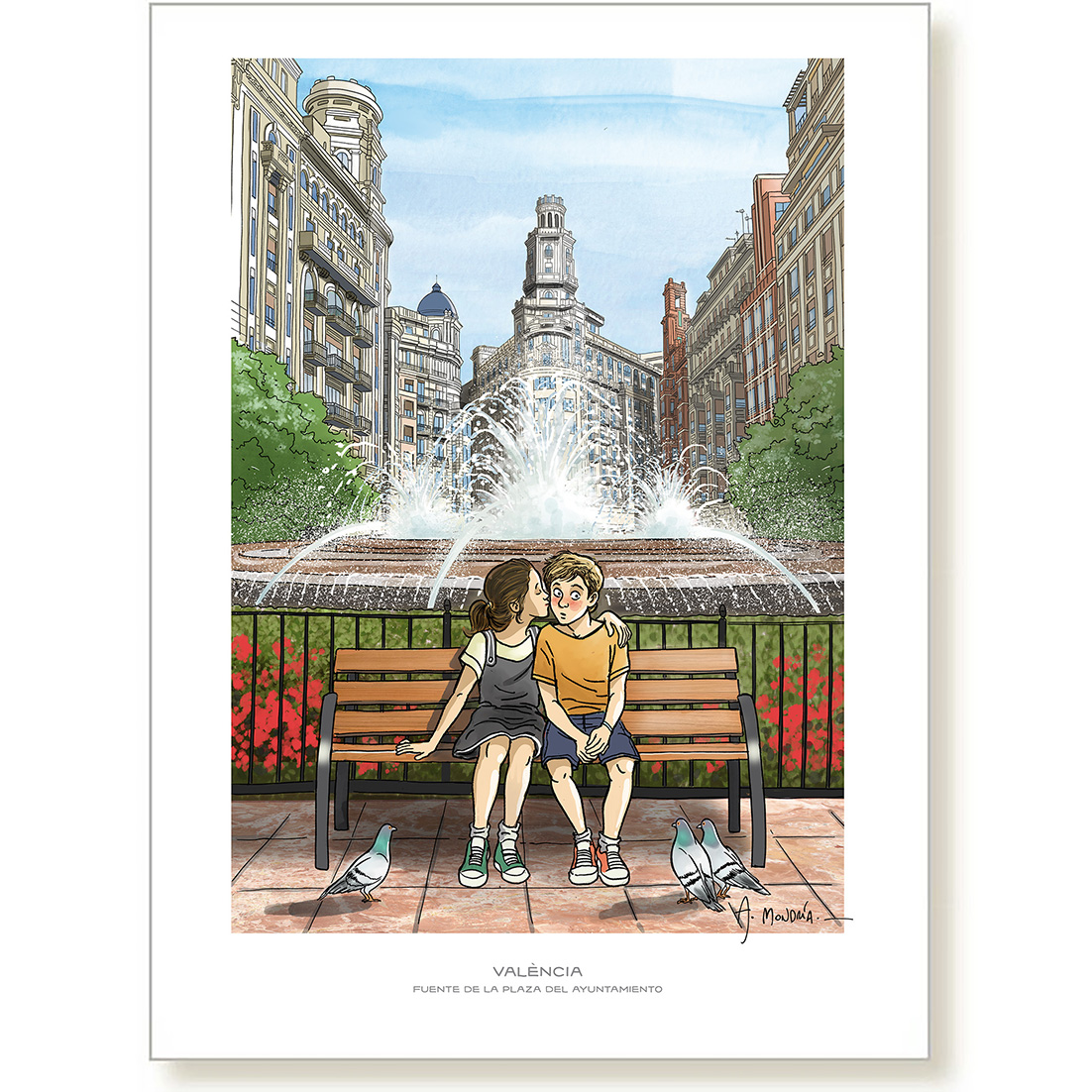 Esta imagen trata de rendir homenaje a uno de los elementos más reconocibles de la Plaza del Ayuntamiento, ese que todos identifican aunque no siempre miren directamente. La fuente es el corazón del espacio, un símbolo cotidiano de València que acompaña a la ciudad desde hace generaciones y que sigue marcando el ritmo de su día a día.
